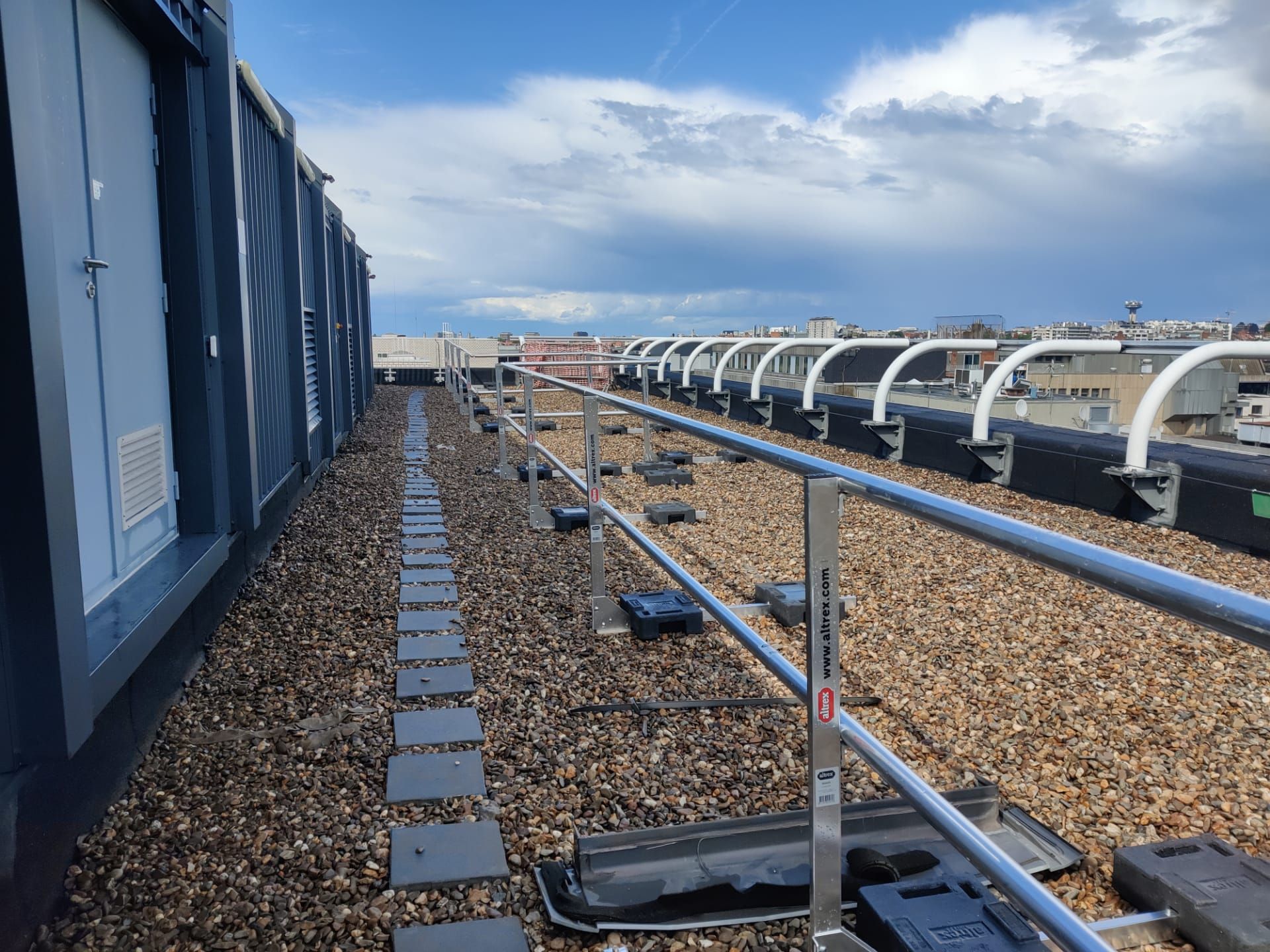 Lignes de vie, systèmes anti-chute verticaux, points d’ancrage, garde-corps autoportants, sur bac en acier ou sur acrotère, échelles à crinoline, passerelles ou encore plateformes…
